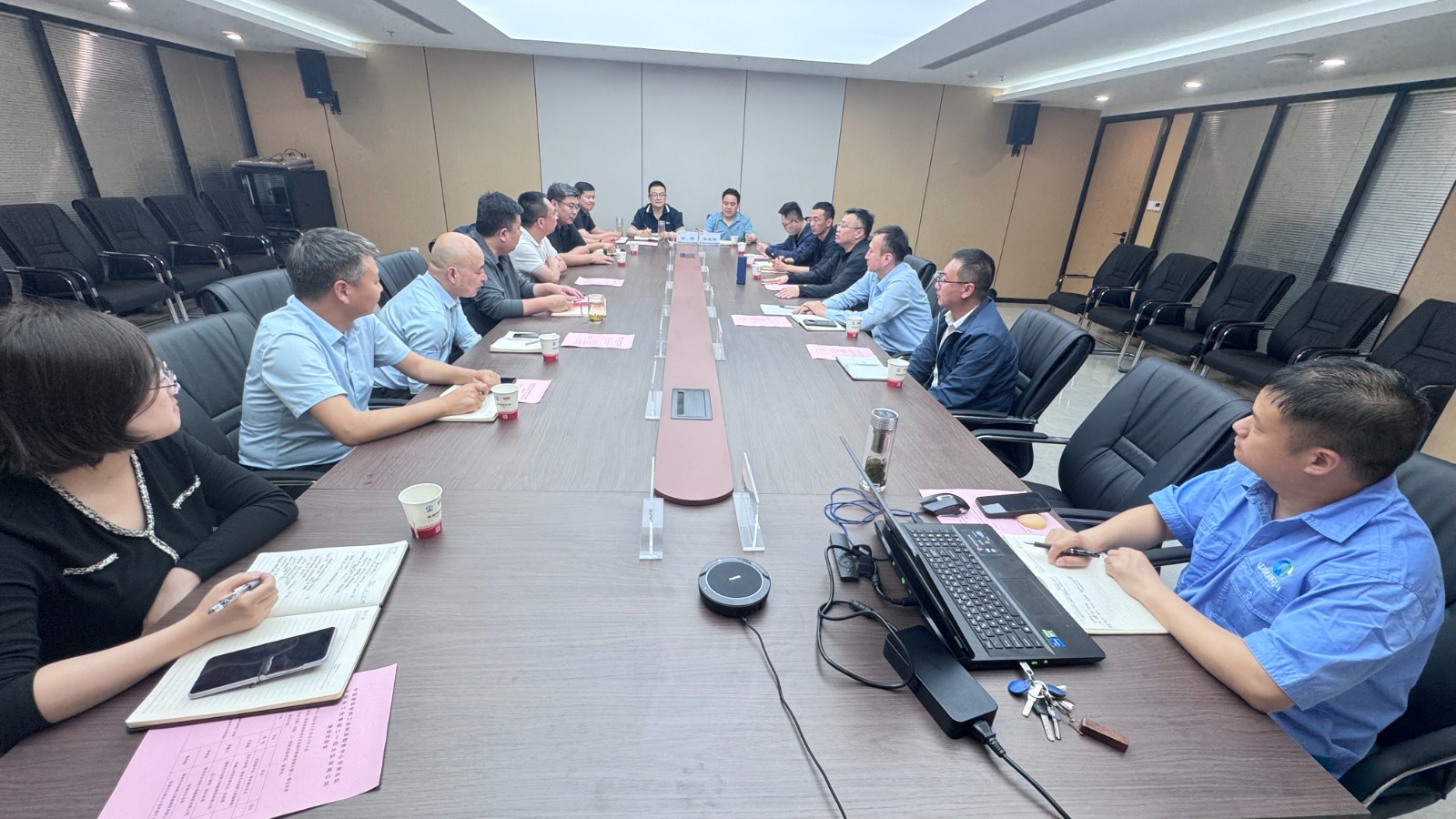 中國建筑材料工業地質勘查中心甘肅總隊隊長助理王智強等四人、公司領導班子成員、物化探研究院及公司相關部門負責人參與座談。