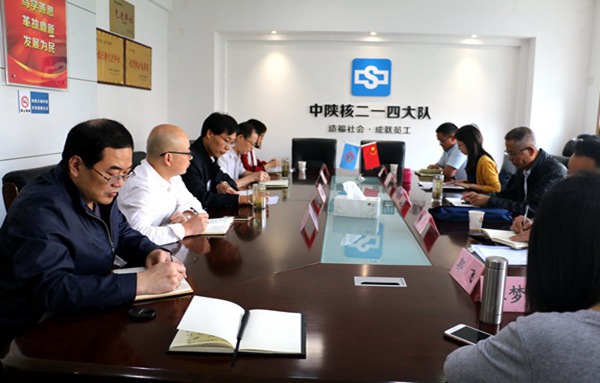 中陜核工業集團公司黨委副書記王建國分別于5月22日、24日蒞臨公司西安總部、城固基地,對公司黨建工作進行檢查調研,公司黨委書記、董事長鄧盛波等領導及相關部門人員、基層支部書記參加了檢查調研。