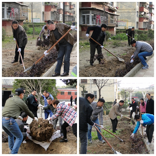 陽春三月,春風拂面。綠化過程中,大家歡聲笑語,擼起袖子,掄鎬揮掀,挖坑扶苗,填土澆水,分工合作,享受著芳香泥土帶來的快樂,憧憬著未來綠色家園的幸福,種植紅花繼木1000株,桂花及金邊黃楊等樹種20余棵,順利完成當天的綠化計劃。